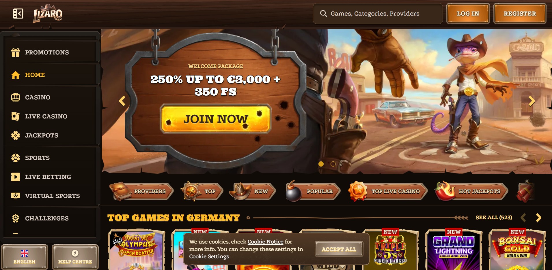 Lizaro stands out for its massive game library, featuring over 3,000 titles across slots, jackpots, table games, and instant-win options, along with a premium live dealer section powered by top providers.