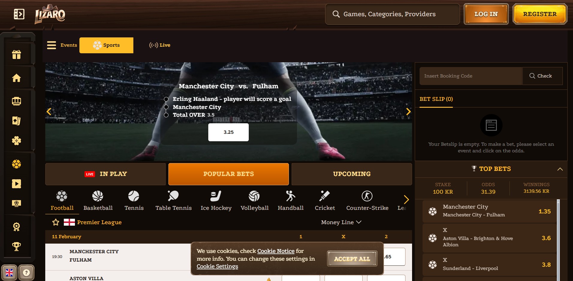 Lizaro offers a fully featured sports betting option designed for both casual punters and serious bettors. Coverage spans popular leagues, niche competitions, and esports, with a wide variety of bet types, live odds, and in-play markets. We found the interface to be intuitive in our Lizaro review, making it easy to navigate between pre-match and live betting, while competitive odds and regular specials keep the action exciting.